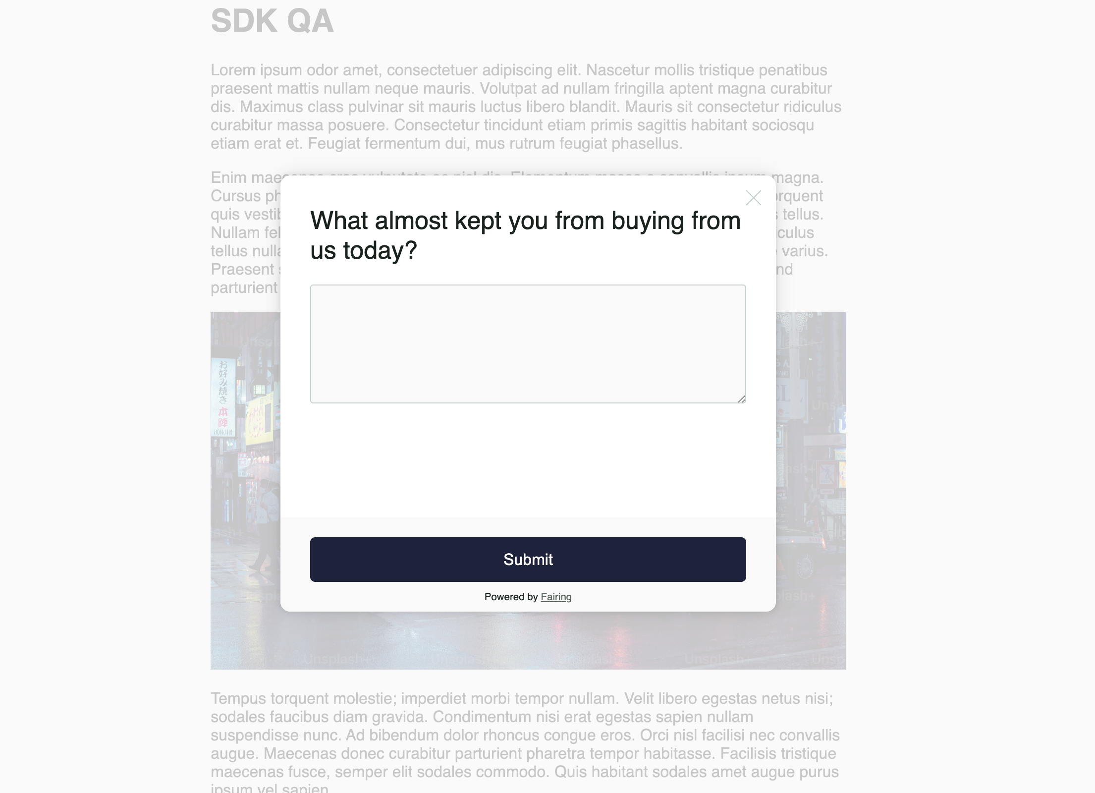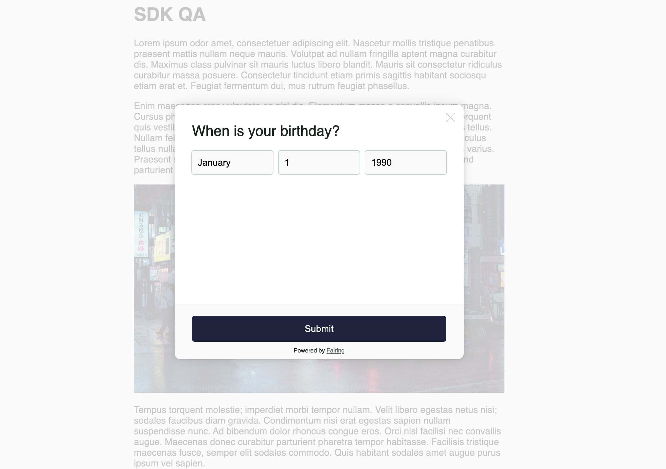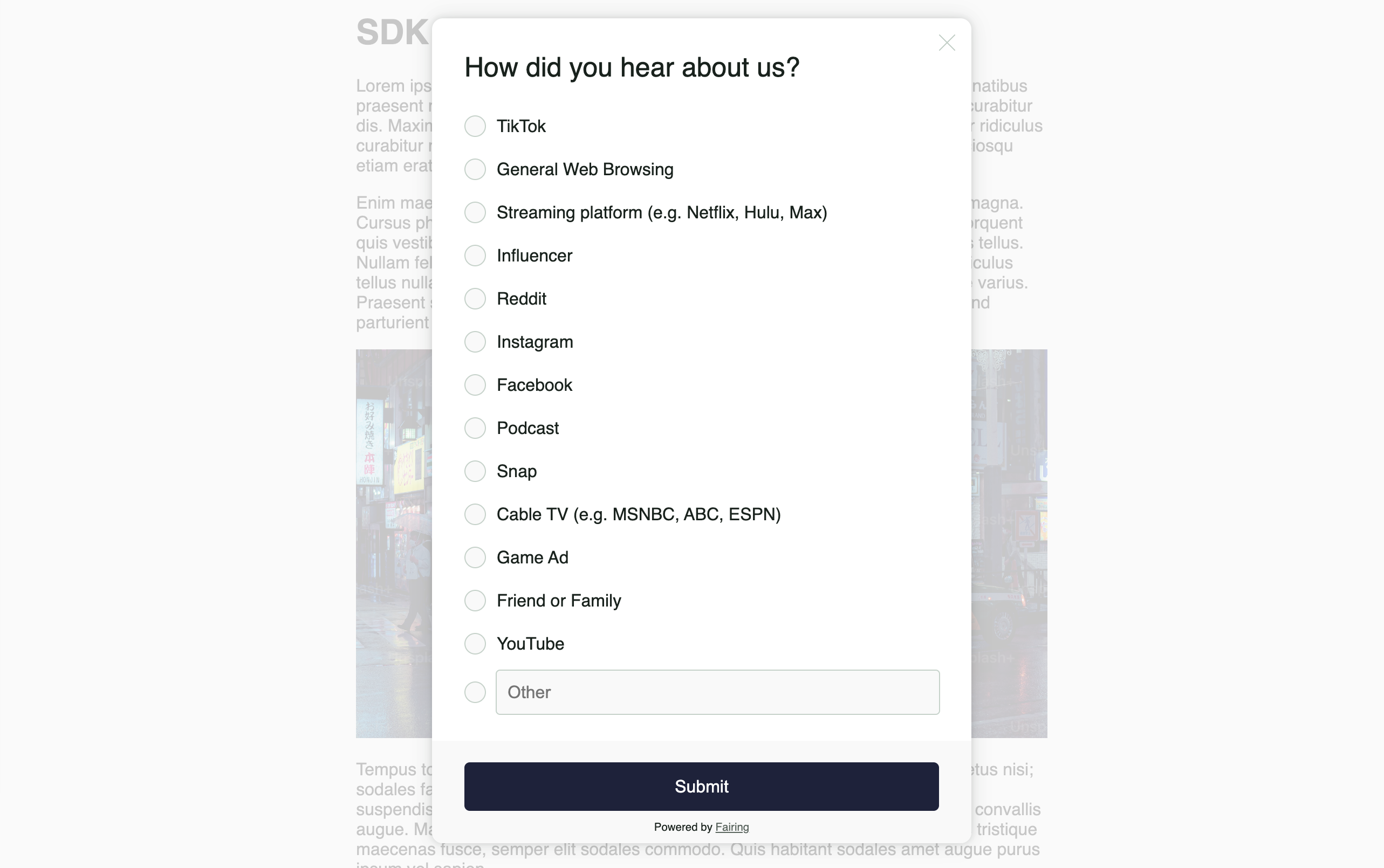 See below a preview of the out of the box styling for the script. The script will automatically inherit your site's font. To customize other aspects of the script, reach out to the Fairing team.