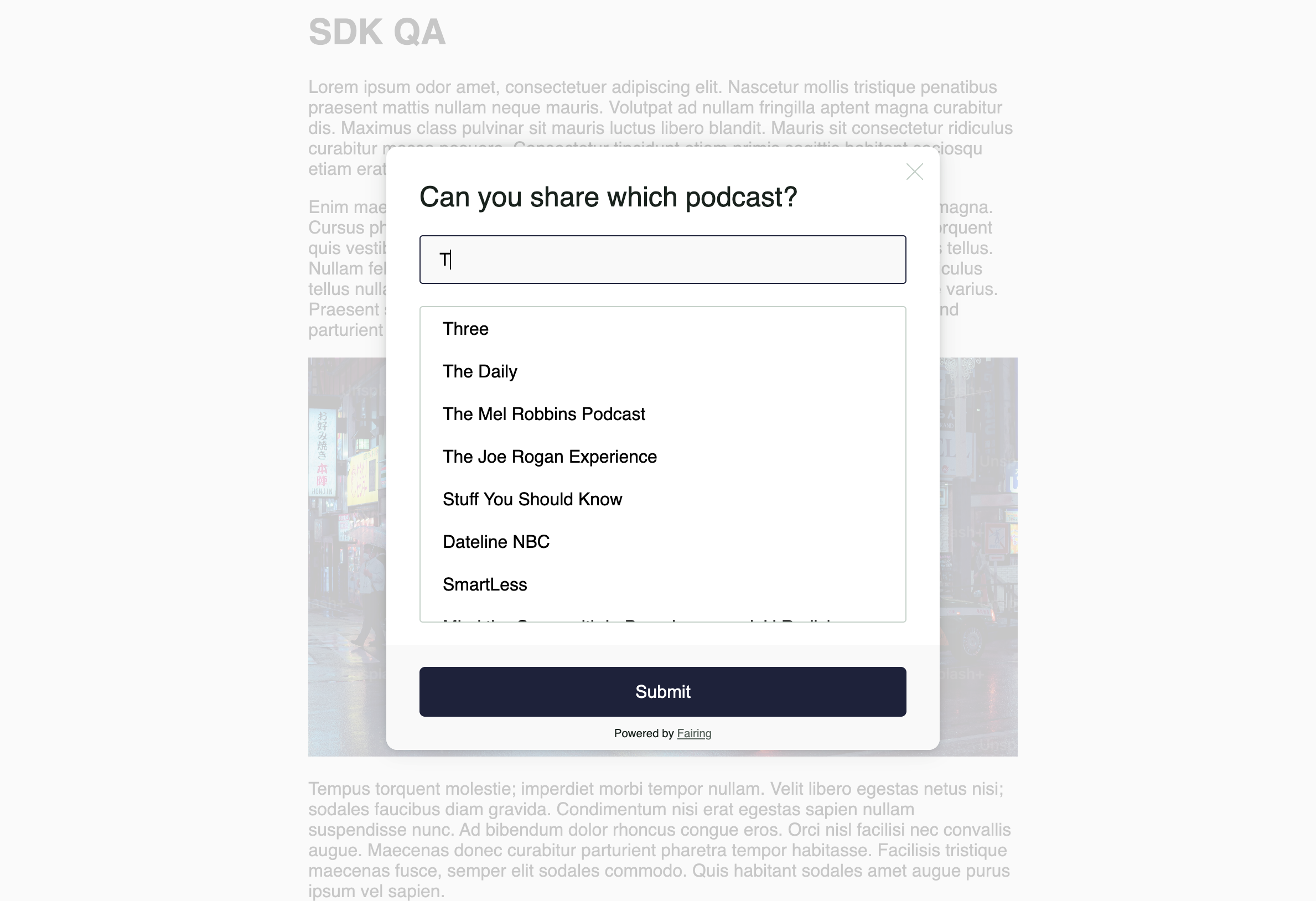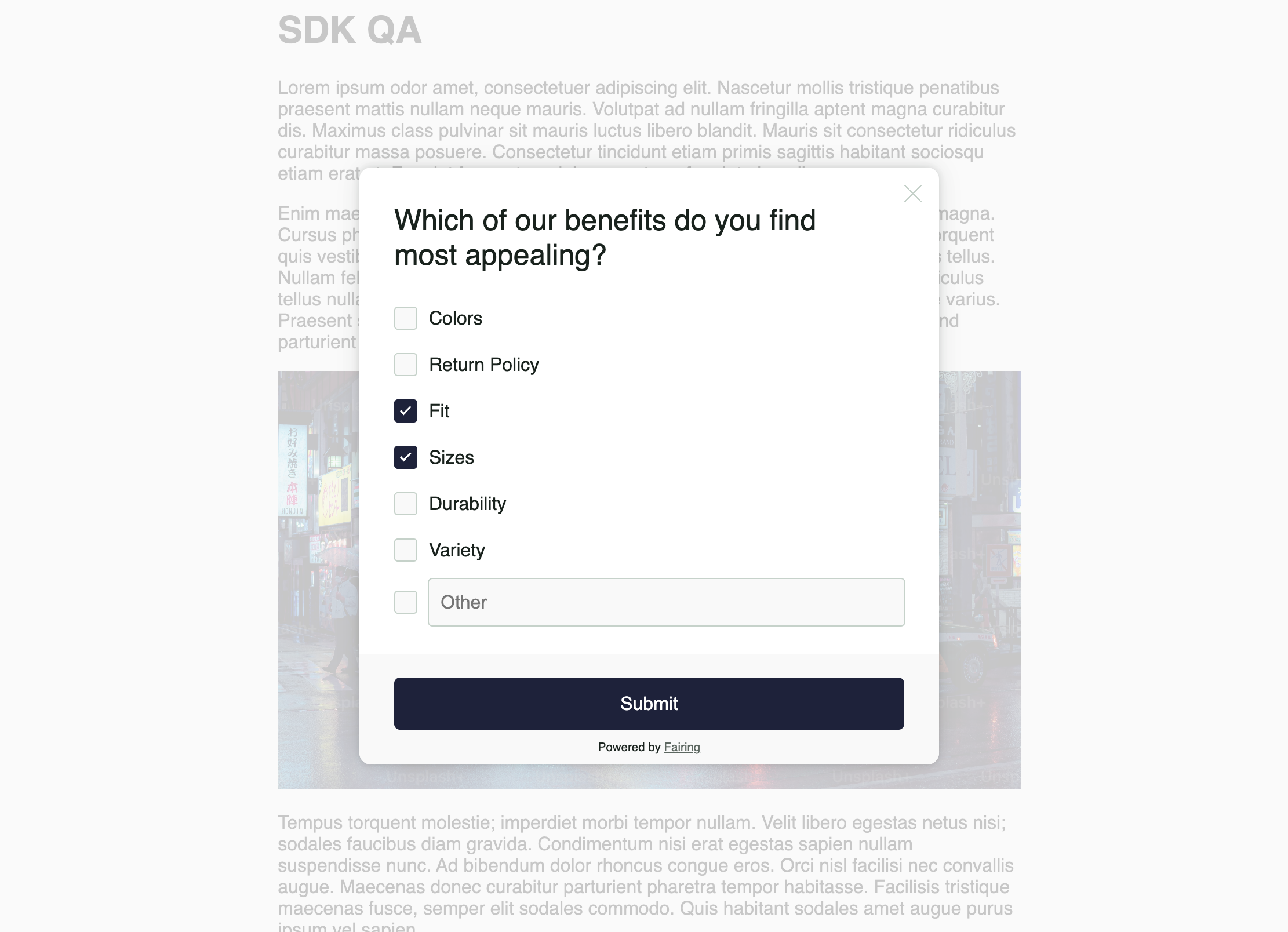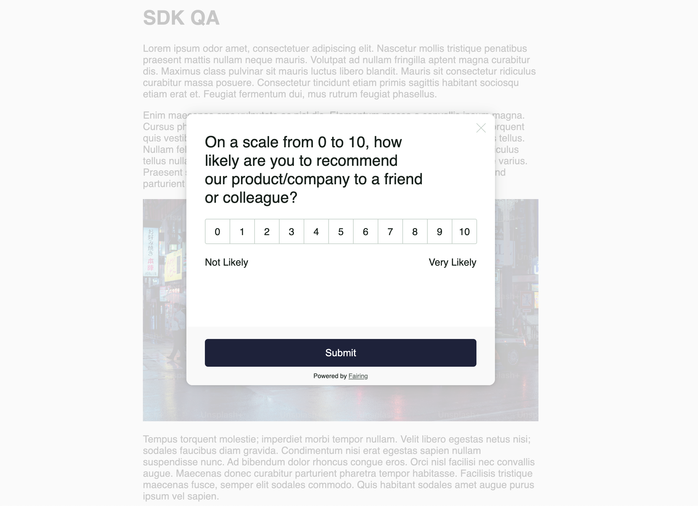 See below a preview of the out of the box styling for the script. The script will automatically inherit your site's font. To customize other aspects of the script, reach out to the Fairing team.